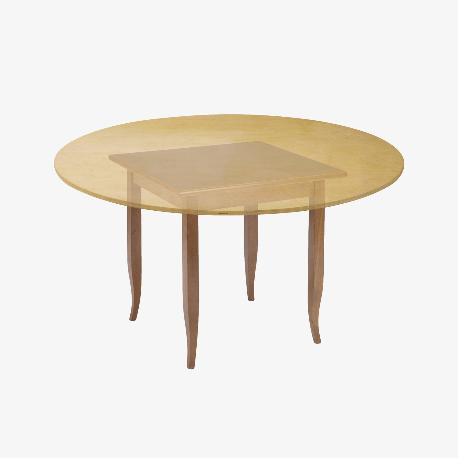 Prolunghe rotonde con sistema di aggancio, da montare su tavoli quadrati.